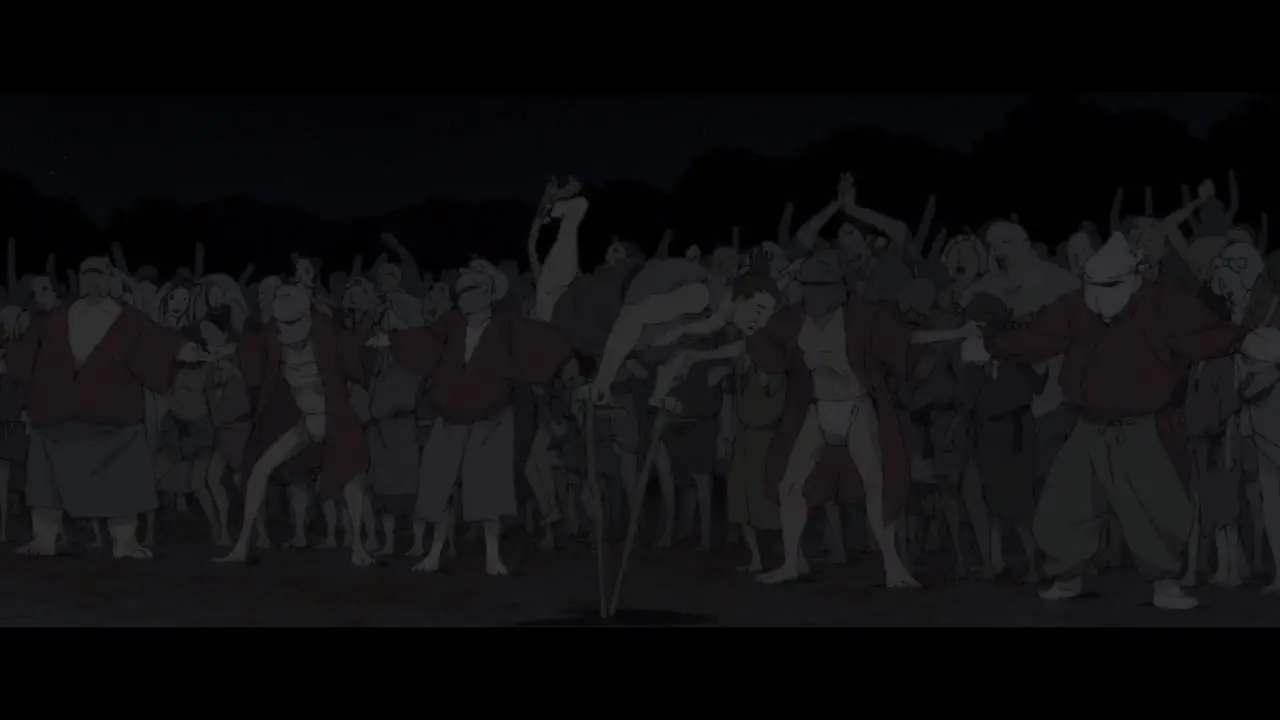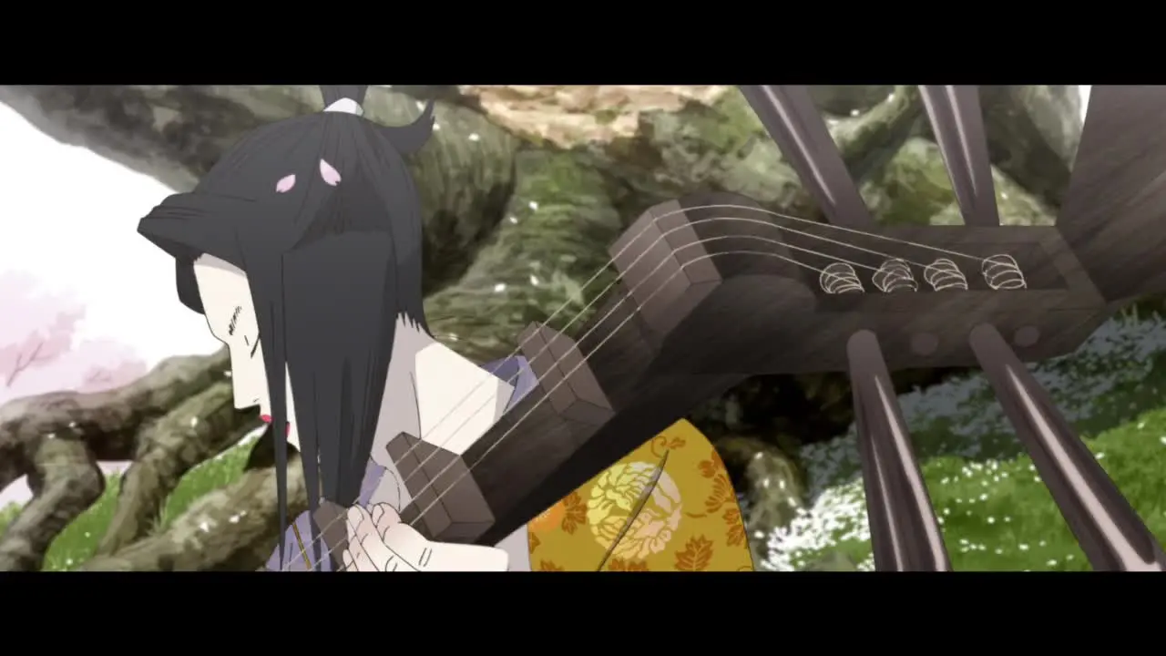 В четырнадцатом веке Япония, опустошенная гражданской войной и чумой, рождает странную легенду. Мальчик по имени Томона, сын знатного рода, лишается зрения, но обретает дар — он может видеть истории умерших. Его путь пересекается с другим изгоем: юношей по имени Ину-о, чье тело, покрытое белой шерстью и увенчанное собачьей головой, делает его чудовищем в глазах людей. Связанные общим одиночеством и проклятием, они находят спасение в искусстве. Ину-о, обладающий нечеловеческой силой и грацией, становится танцором, а Томона — его сказителем, аккомпанируя на биве.