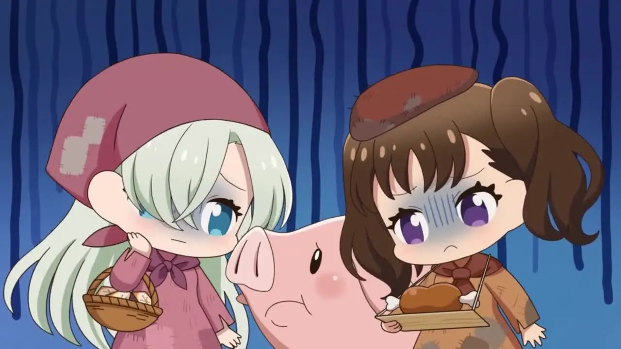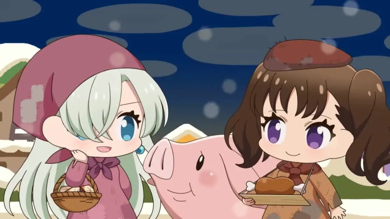 Каждая короткая серия — это отдельная зарисовка, раскрывающая характеры героев через бытовые ситуации. Зритель увидит, как Элизабет борется с кулинарными катастрофами Мелиодаса, как Кинг ревнует Диану к ее новому увлечению — садоводству, а Мерлин проводит странные и бесполезные эксперименты прямо в зале паба. Мини-аниме наполнено теплым юмором, отсылками к основному сериалу и моментами, которые показывают, что даже величайшие грешники ценят простые радости жизни, вкусную еду и компанию друг друга.